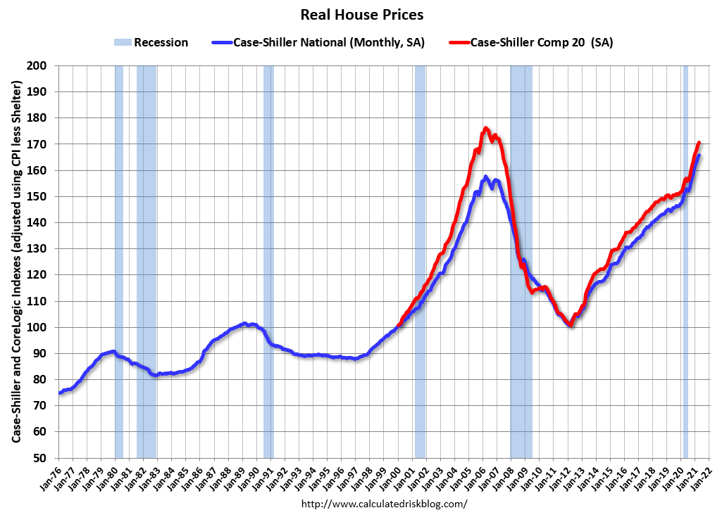 To the extent there was something else behind the Fed making its move to raise rates it was also the increasing publicity about the massive increase in completely flaky mortgages, with publicity about that really taking off in 2005. I regularly tracked the Saturday Real Estate section of the Washington Post, and I remember that the first time I began to think the end of the bubble was coming and that it was clearly becoming unsustainable was somewhere in mid-2005 when I saw a story in that WaPo Saturday real estate section about how the vast majority of mortgages being issued in the Washington metro area were “unconventional,” including with a majority of them having no down payments. It was pretty clear that the mortgage side of it was coming completely unhinged. That something like that does not seem to be remotely going on is I think a much stronger argument against some impending super painful collapse of housing markets than your rather strained argument that current prices really are not bubbly at all because interest rates are just so gosh darned low, although I grant they are lower now than they were back then.