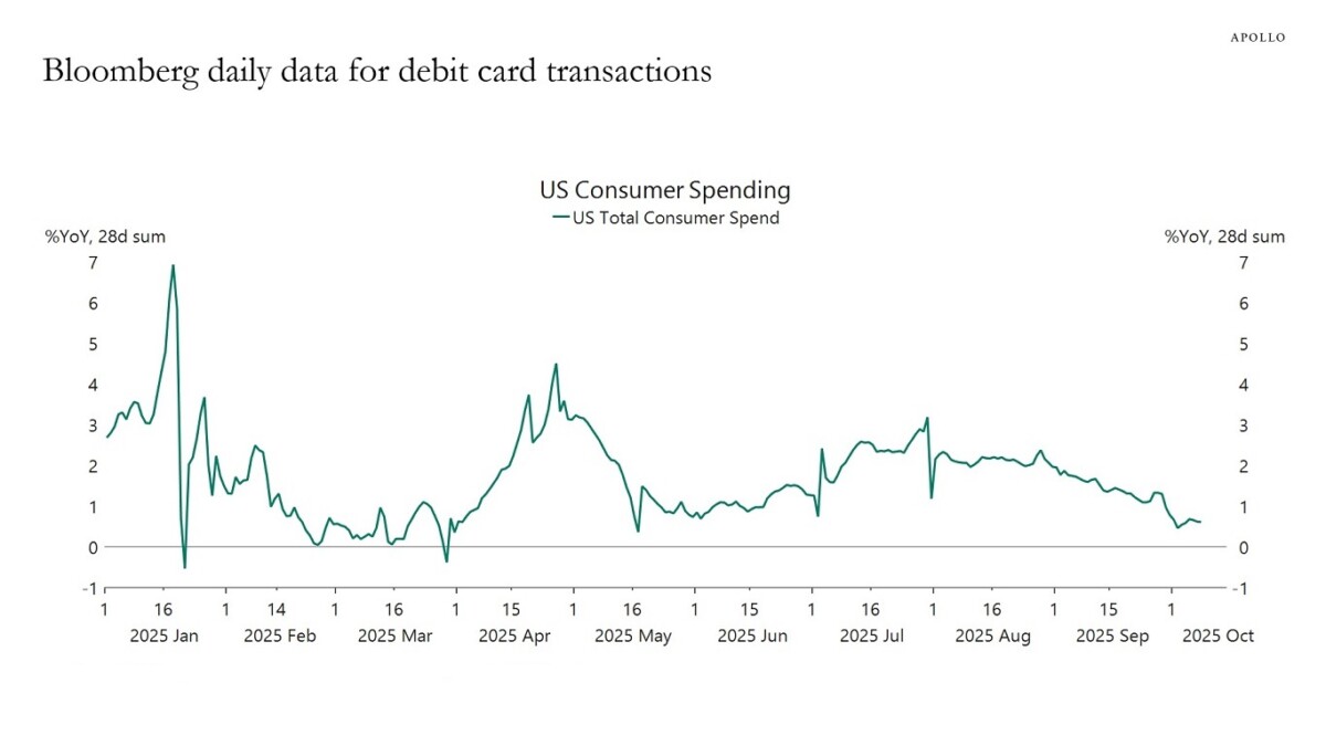As it looks like we’ll be relying on alternative data for a while, here’re two graphs from Torsten Slok’s compilation.