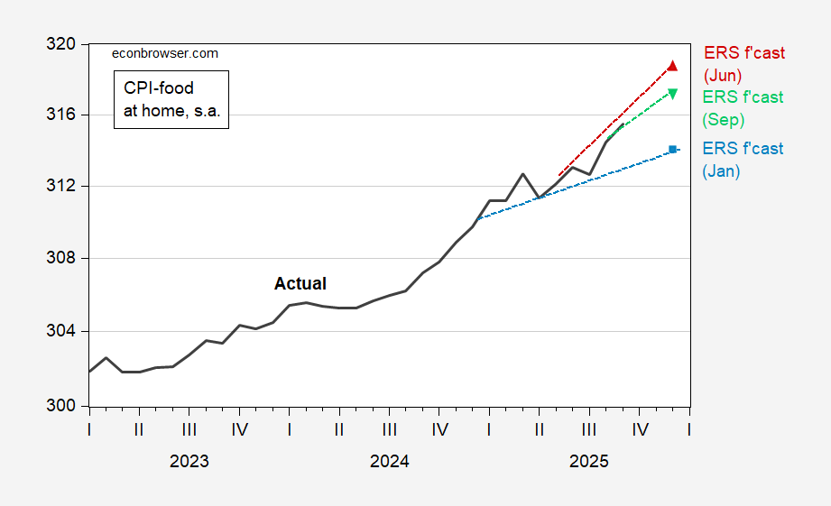 Grocery inflation slightly above September ERS forecast for 2025 y/y, furniture prices continue to (technically speaking) zoom up.