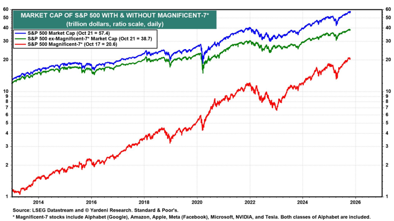Here are the price-earnings ratios for the Magnificent-7 vs. S&P500 ex-Mag 7.
