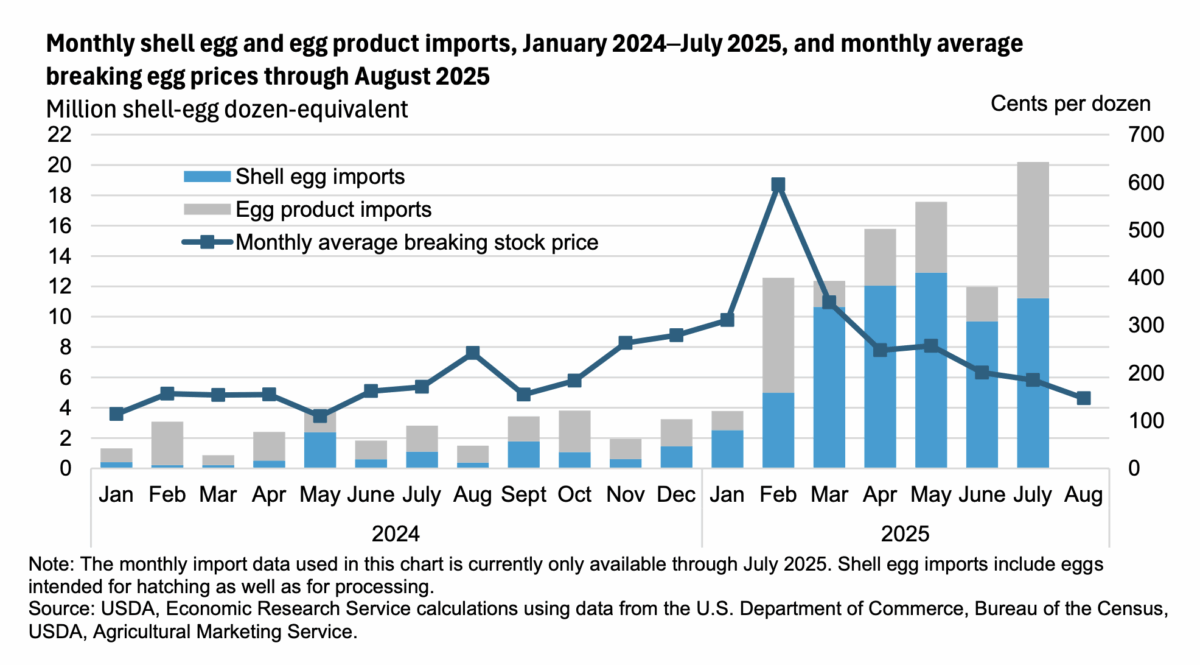 Egg prices have come down 29.6%, relative to January 2025. However, some credit — as mentioned previously — has to go to increased import flows.