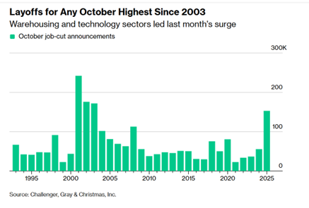 Today, we also saw Challenger, Gray and Christmas October job cuts data come out.