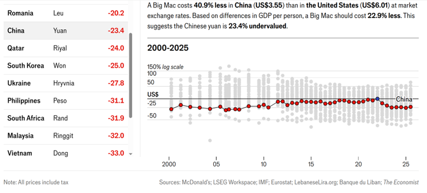Prominent currency valuation models are based on current account positions. This summer, the International Monetary Fund’s External Sector Report noted China’s 2024 cyclically adjusted current account surplus was 2.0% of gross domestic product, exceeding its norm by 1.2 percentage points of GDP. On that basis, the Fund estimated renminbi undervaluation at 8.5%.