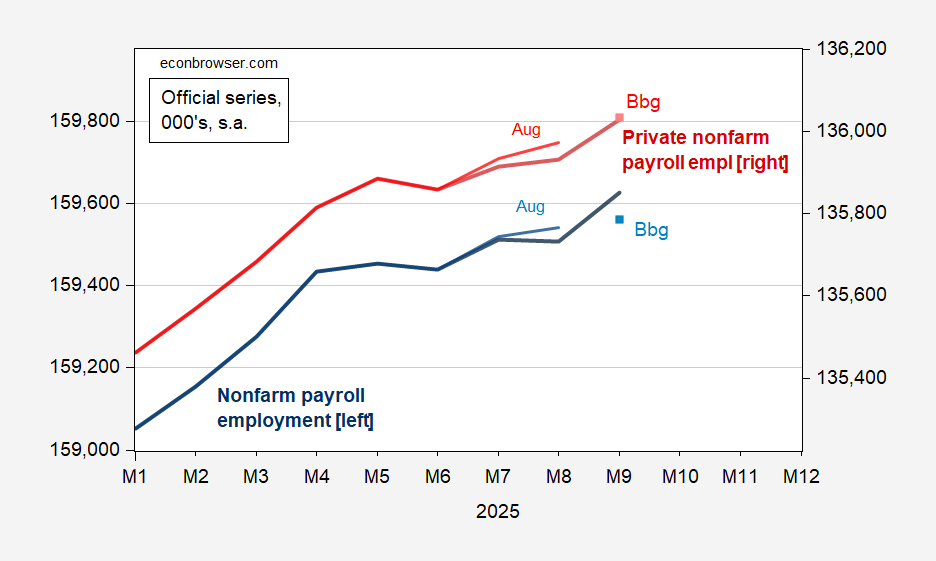 I zoom in to this August as well as September employment data, to show the impact of revisions.