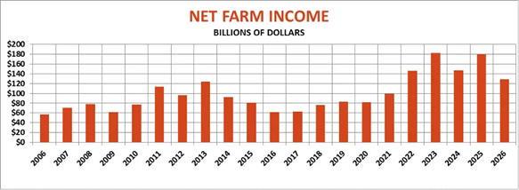 The USDA’s forecast for 2026 comes out in a couple days (see here for September release); here’s one guess for (nominal) net farm income in 2026: