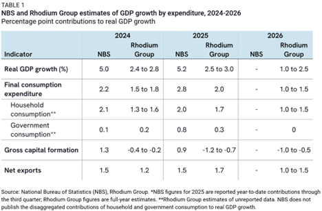 China’s statistics show real GDP growth of 5.2% year to date through the third quarter of 2025, an acceleration from 2024. They will almost certainly claim 5% growth or better for the full year. A year ago, we said China could perform better in 2025, hitting 3 to 4.5% if Beijing prioritized growth after a poor 2024 performance in the mid-2s. But actual 2025 growth fell short of 3% again, with a strong first half and then a badly down-sloping second half.