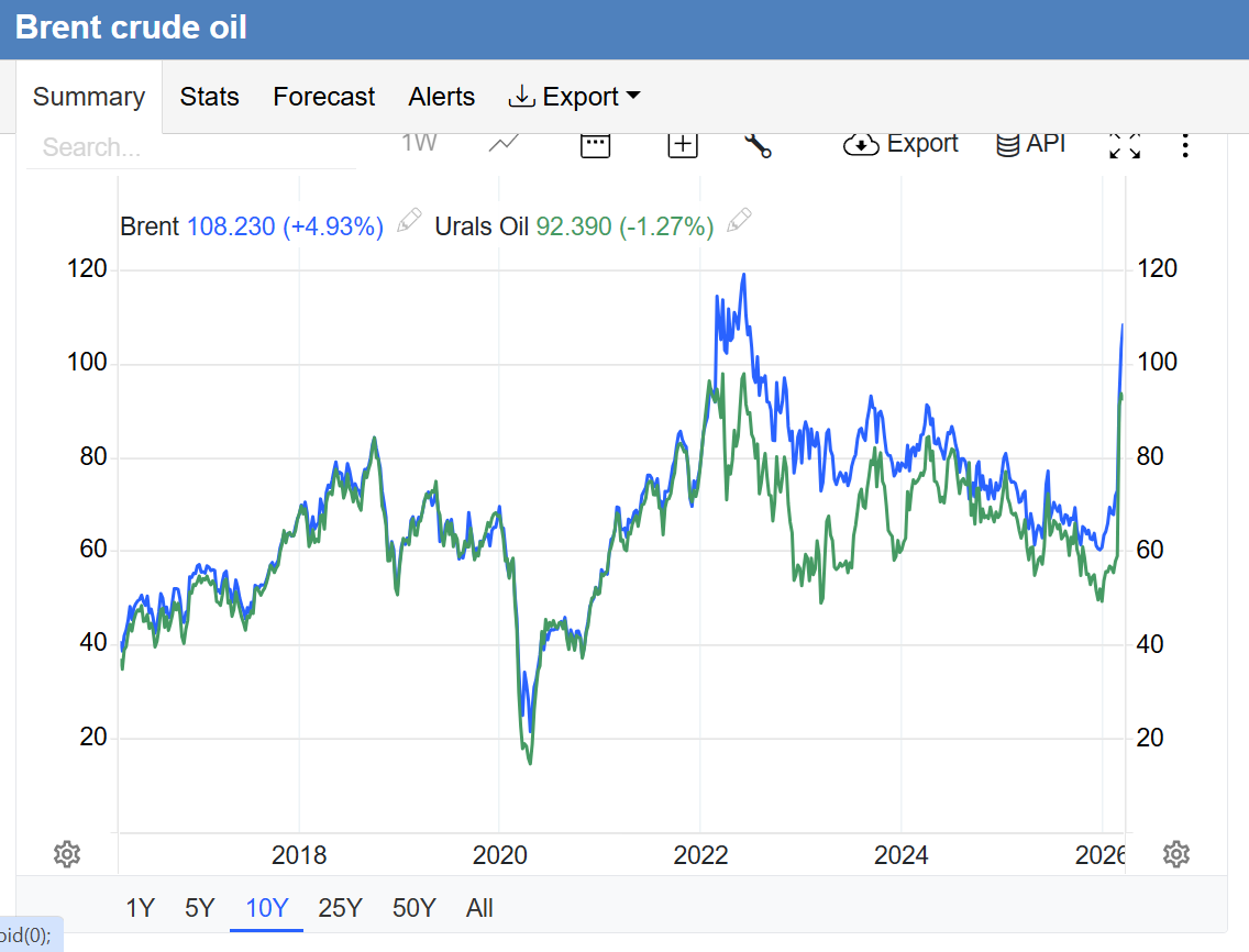 Urals way up, to $92.4