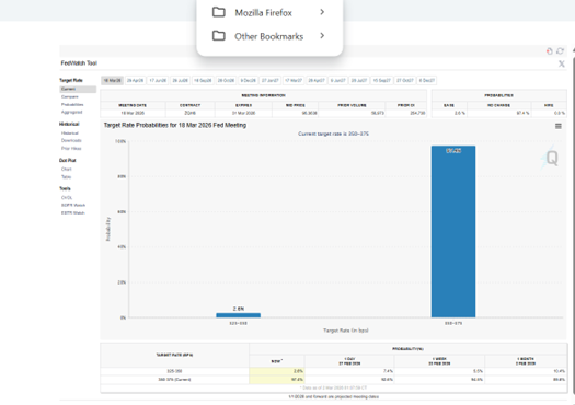 CME FedWatch indicates staying put next meeting, rises by nearly 5 percentage points; staying at current rate rises at the 29 April meeting by nearly 10 percentage points.